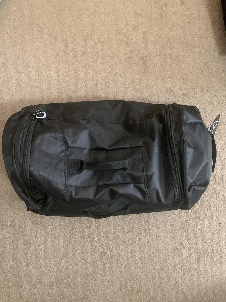 We received this bag as a gift, and I cannot say enough great things about this duffel bag. This bag is lightweight and easy to maneuver when filled. We put about 50 lbs of items in this bag, which held the items extremely well in the upper and lower compartments. I never had a duffel bag with an upper and lower compartment section, which worked out to our delight for t...