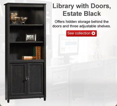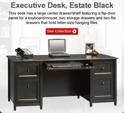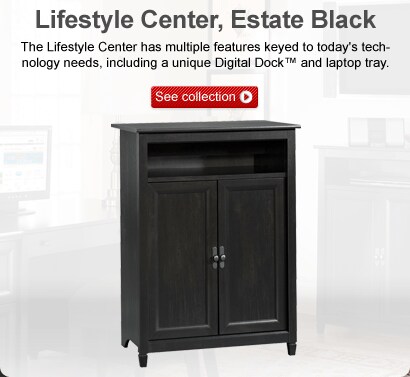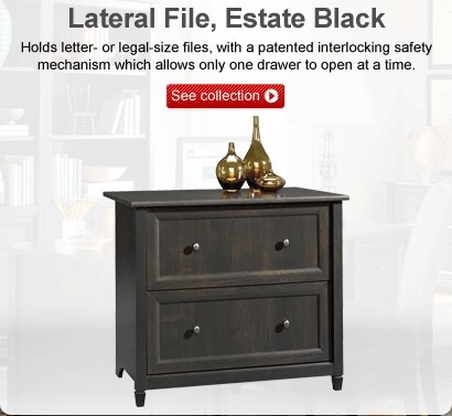 The design of the Sauder Edgewater collection reflects modern function and storage capability. It features solid-wood sculpted tapered feet, distinctive kick rails, dark hardware and shapely, and soft-framed doors and drawers.