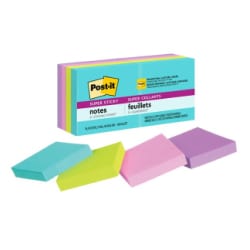 Post-it® Super Sticky Notes stick 2x stronger to keep ideas, lists, and reminders in place—no tape or tacks needed. Move and restick on any surface, cleanly and easily.