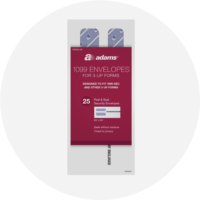 Adams 2023 3-Up 1099 Envelopes, Double-Window, Peel & Seal Self Seal Closure, 25/Pack (STAX3-23)~#|#~7102D173-66C7-4943-AD517673F91AAB3F_sc7Adams 2023 3-Up 1099 Envelopes, Double-Window, Peel & Seal Self Seal Closure, 25/Pack (STAX3-23)~#|#~9A46F71F-2106-4375-9AAF0A638473518B_sc7