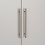 - Satin nickel finished metal handles and adjustable hinges