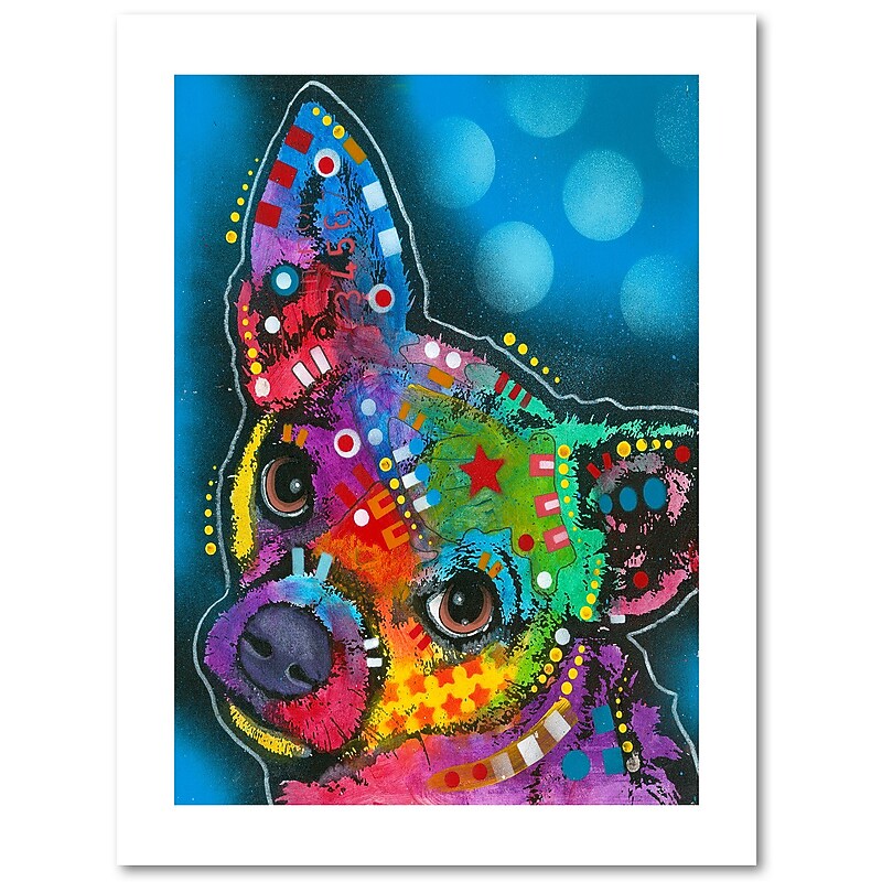 This print on high quality archival paper features a vibrant portrait of a chihuahua.Art and animals. These two passions define Dean, a Brooklyn, New York-based artist who uses vibrant Pop Art colors and bold abstract patterns to give a voice to his fav orite Subject: animals..Giclee Print.Frame Type: No Frame.Dimensions: 18 x 24.Artist: Dean Russo