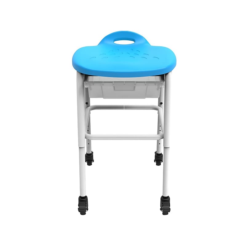 32 resultsThe Luxor modern and functional student stool is a great addition to any classroom or home. Highlights include a clear removable bin that provides a roomy place to store papers, pencils, and other small items. Four 2" casters (each with a locking brake) and a built-in grab handle make the stool easy to move across a variety of surfaces, and stack up to three (sold separately) high for space savings and easy storage. The 7" height-adjustment range (in 1" increments) makes it suitable for a wide range of ages and grades. This stackable classroom stool is perfectly sized for young learners and, thanks to a sturdy plastic seat and an all-metal frame, is easy to clean. And best of all, the stool works perfectly with the brand's MBS-DESK student desk..Modern and functional height-adjustable student stool with removable storage is a great addition to any classroom or home.Features a sturdy steel frame with a white powder-coated paint finish and a sturdy plastic seat in blue.Overall dimensions: 20"-27"H x 19.75"W x 19.75"D.Seat dimensions: 16.75"W x 16.5"D.Backrest dimensions: 2"H x 9"W.Armless design allows for easy movement and versatility.Assembly required.Meets or exceeds the ANSI/BIFMA standards.Tool-adjustable height makes the stool suitable for a wide range of ages and grades.Equipped with a 3"D removable storage bin with a 20 lbs. weight capacity (with the bin fully inserted into the storage unit; when the bin is pulled out, it can support a maximum of 5 lbs.).Clear plastic bin lets you know the contents at a glance.Built-in safety feature prevents the bin from accidentally being pulled off its track.Features 2" smooth-rolling, lockable casters for easy mobility; caster locks secure both the wheel and the mechanism.Stackable design (when the bin is removed) for space savings and easy storage (recommended maximum stack height: three stools).Durable plastic construction is easy to clean.Lifetime manufacturer limited warranty