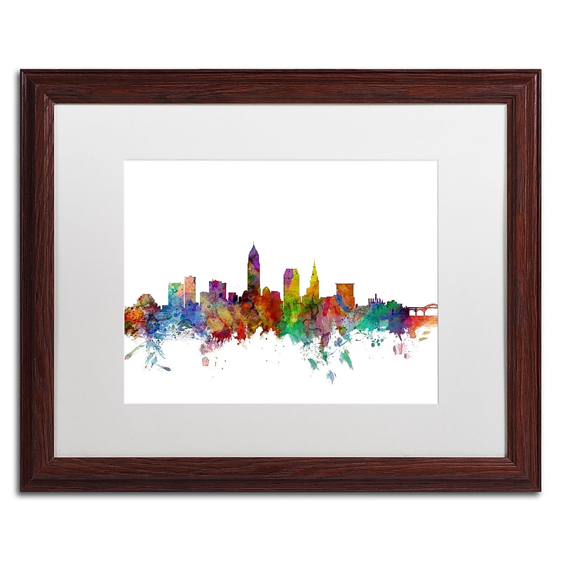 This contemporary fine art by Marlene Watson 'Cleveland Ohio Skyline BG-1''12" x 19" Canvas Stretched - adds a touch of class and elegance to any room this piece is displayed in..Style: Contemporary.12" x 19" x 2".Made in USA