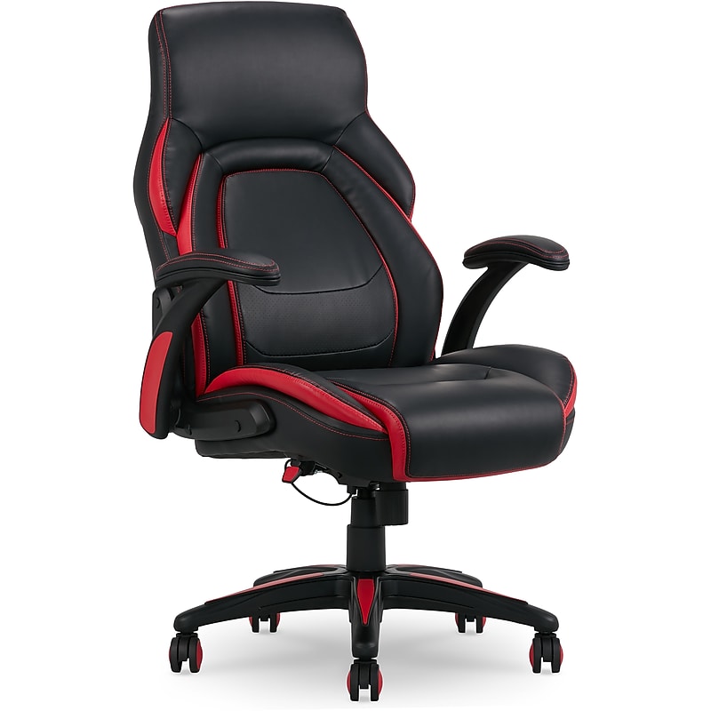 Core seating technology. layered body pillow for lasting comfort. durable five- star nylon base. oversized casters. 10- year manufacturer limited warranty ... core zoned technology for optimal firmness and lasting comfort. ... an advanced foam layering system is designed to offer deliberate, unique, and zone- based support.. computer and desk chair is a smart addition to any office space. black with dark gray accents bonded leather upholstery is easy to maintain. built- in headrest provides additional upper body support. overall dimensions: 43 ''- 46 '' h x 29. 25 '' w x 30. 5 '' d. seat dimensions: 6 ''- 7. 75 '' h x 23. 25 '' w x 21. 25 '' d. back dimensions: 22. 5 '' w x 22. 5 '' h. fixed upholstered arms for supporting your forearms. swivel- tilt mechanism with adjustable tension control for comfort. this chair can safely support a user who weighs up to 275 lbs. assembly required. meets or exceeds ansi/bifma standards. ergonomically designed arms and fingertip control for seat height and tilt adjustments. patented comfort