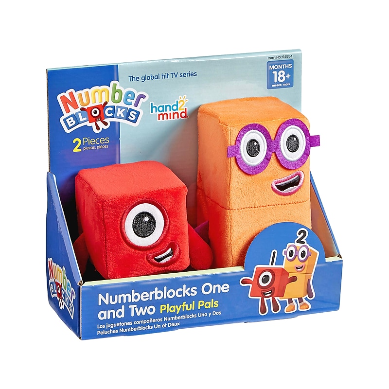 5 resultsWhile playing with this soft, cuddly set of Numberblock friends from hand2mind, children discover that everything really is better with two, just like in the Numberblocks episode of the same name! They will quickly find that these two Numberblock friends are the perfect companions for their imaginative play adventures. Numberblocks are the friendly characters from the global hit TV series that's available in the US on Netflix and YouTube..Two stuffed friends are the perfect companions for children's imaginative play adventures.Both figures are made of soft, plush fabric and stuffed with foam for maximum huggability.For kids ages 18 months and up.Securely attached arms and legs are stuffed with polyester filling