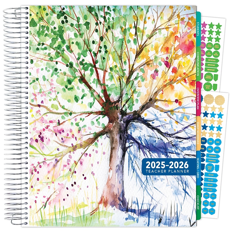 The 128-page Carson Dellosa Grow Together Teacher Planner organizes each lesson plan and all of your daily tasks, monthly and yearly schedules, grades, and more with motivational messages like "Grow Together"..A+ Teacher Planner: Inspire learning growth moments for the year ahead with the 128-page Carson Dellosa Grow Together Teacher Plannerāthe perfect 8ā x 11ā undated planner for your classroom management needs..Classroom Organization: Organize schedules, lesson plans, classroom curriculum, and more. Use the checklists in the daily, weekly planner, and monthly planner to track grades, attendance, and homework completion..Goal-Setting Lesson Plan Book: Use the comprehensive informational section in the lesson planner to record substitute information, log communication, store contact information, create year-long plans and goals, and more..Teacher Planner Features: This teacher plan book includes 116 planner stickers, including 16 tab, 9 to-do list, 64 reminder, 6 note, and 21 accent stickers to organize your spiral planner and keep track of progress with ease..Why Carson Dellosa: For more than 40 years, Carson Dellosa has provided solutions for parents and teachers to help their children get ahead and exceed learning goals. Carson Dellosa supports your childās educational journey every step of the way..This 128-page teacher planner includes 116 stickers and organizes your school year and lesson plans in one stylish package that is easy to personalize.