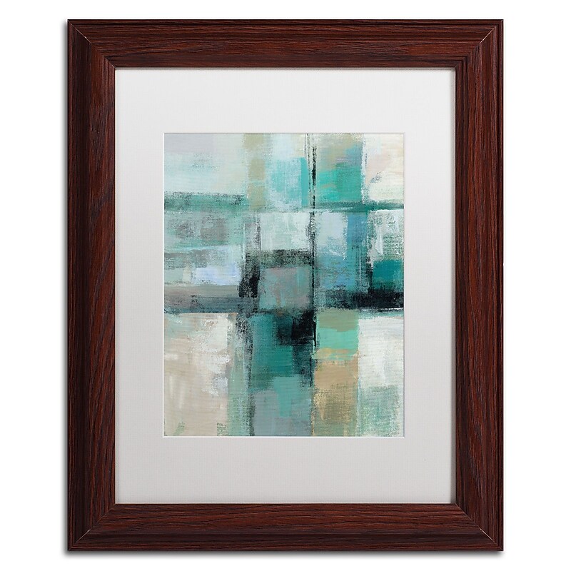 The "Trademark Fine Art WAP0130-W1114MF "Island Hues Crop I" by Silvia Vassileva 14" x 11" Framed Art, White Matted" will be a lovely addition to any art enthusiast's collection. This painting print will add to the visual appeal of your space and lend an artistic touch to it. Attributed to Silvia Vassileva, this minimalistic art work brings a touch of artistry to your home or office decor. This abstract artwork is imaginative and lends an arty undertone to your decor. It features a teal colored abst ract grid. Created using the giclee print technology, the print is on par with art prints displayed at art galleries or museums. An antique white mat frames the art and accentuates it. The artwork comes encased in a matt-finished wooden frame that compl ements any decor..Type of Art: Prints of Paintings.Brown wooden frame.Size: 14"H x 11"W.Artist: Silvia Vassileva.Mat Finish: White.Adorn your living room wall with the "Trademark Fine Art WAP0130-W1114MF "Island Hues Crop I" by Silvia Vassileva 14" x 11" Framed Art, White Matted"
