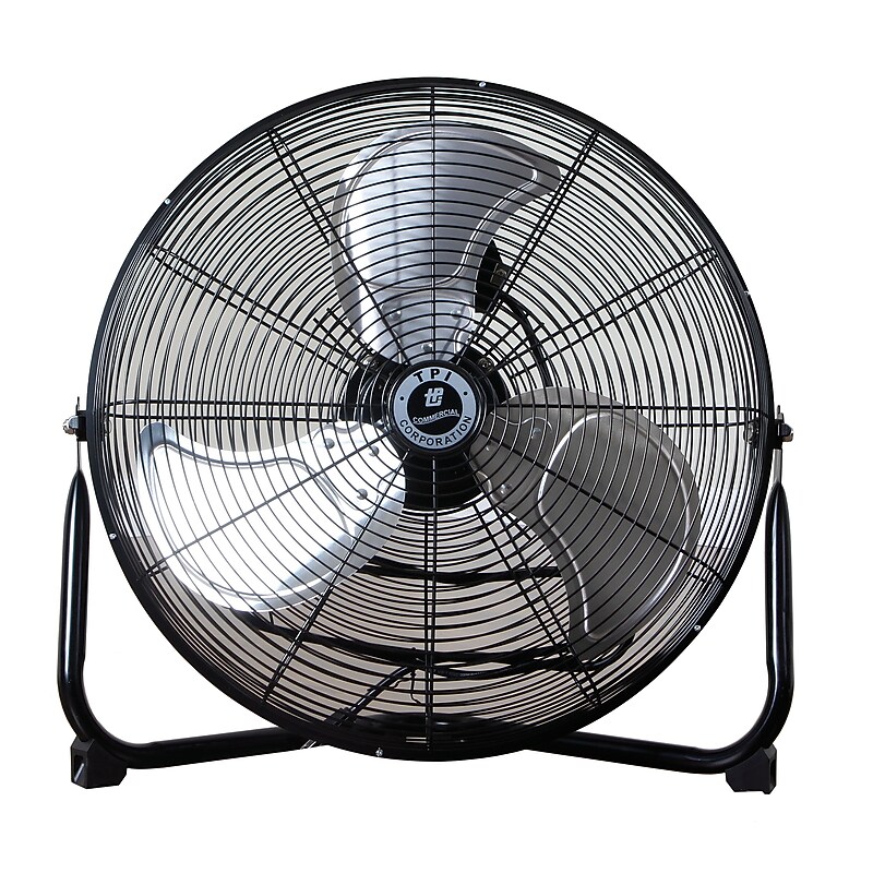 This TPI Corporation three-speed floor fan's head tilts 360 degrees. It has coated steel guards and meets OSHA standards. TPI Corporation produces innovative, industry-leading products for electric heating, fan, and ventilation markets. Anything you need in the industrial, commercial, or residential use..Industrial floor fan is a great solution to get a cool, refreshing breeze.Features three-speed control.Dimensions: 26"H x 26"W x 10.5"D.Head tilts 360 degrees allowing you to direct airflow where you want it.Comes in gray/black.Equipped with 10' long SJT type 3 conductor cord.Motor features: 1/8 HP, 120V, one-phase, sleeve bearing, permanently lubricated, 5/16 shaft.Speed: 2100 CFM (high), 1900 CFM (medium), 1600 CFM (low).Coated steel guards and steel hub/spider aluminum paddle blades for durability.Switch type: rotary switch.Designed to move air in an area of up to 150 sq. ft..Meets or exceeds OSHA, ETL Listed Mark standards.1-year manufacturer limited warranty.⚠ WARNING: This product can expose you to chemicals including nickel which is known to the State of California to cause cancer, and chromium, which is known to the State of California to cause birth defects and/or reproductive harm