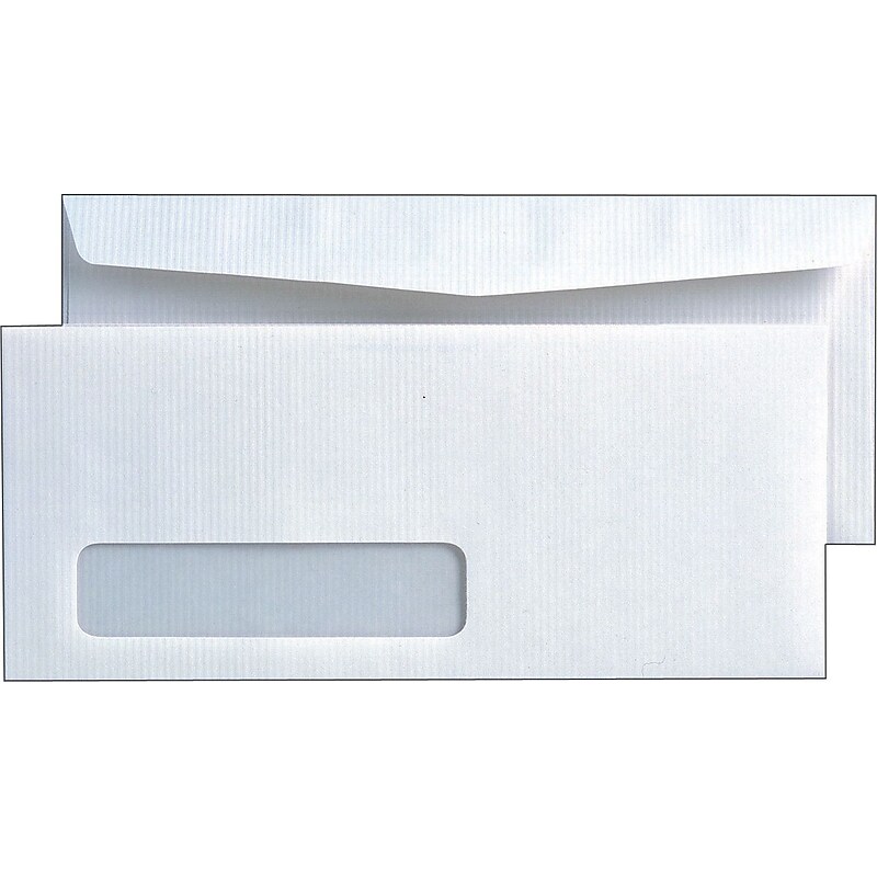 Mail out documents and files that need to remain confidential with these security-tinted #10 envelopes. A security pattern located on the inside of each envelope discreetly obscures all information contained inside, ensuring that private information remains concealed. Made out of sturdy 24-pound white woven paper that helps to prevent tears and rips, these security-tint envelopes stand up to sorting-room conditions, keeping the contents inside safe..PACKAGING MAY VARY, SAME GREAT PRODUCT..Envelopes are great for mailing letters and documents.Made from 24 lbs. white wove paper for durability.#10 envelopes measure 4 1/8" x 9 1/2" in size, providing enough space for your mail.Gummed closure with commercial flap keeps contents in place.Security tinted pattern helps to discourage reading sensitive information through the outside of the envelope.Convenient box of 500 envelopes ensures ample supply.Simply position the address to show through the single-left window.The flap is on the long side for easier filling.Send out confidential correspondence securely with these #10 gummed left-window security-tint envelopes.