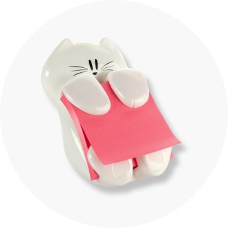 The 3M brand Post it Notes are small pieces of paper with a sticky back that attaches lightly to surfaces and removes just as easily. The notes come in a variety of sizes and colors, including neon, which makes them stand out. Make it easy to grab some notes with Post it Notes Dispensers, so users can pick up their notes with one hand. Many of the Post it Notes Dispensers come in fun designs such as cats or purses that help to decorate a desk. For something smaller, use Post it Tabs, which are thin strips of sticky paper designed to mark signature locations or research areas in books. Place Sticky Tabs on paper to turn them into filing pages to keep information in order. For those who love organization, sticky note holders and sticky note dispensers keep your notes within reach.