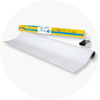 Designed to stick to a variety of painted drywall and steel surfaces, glass, finished wood, and existing whiteboards or chalkboards, the Post it Super Sticky Dry Erase Surface is easy to install and requires no tools—just unroll, peel, and stick. The Post it Super Sticky Dry Erase Surface is stain-proof, erases cleanly every time, and provides a smooth writing surface. From horizontal applications on desks or tables to vertical applications on surfaces where traditional whiteboards cannot be installed, such as windows, the Post it Super Sticky Dry Erase Surface can be cut-to-fit and provides endless possibilities for dry erase solutions in new places. This innovative product transforms any space into a collaborative environment, making it easy to brainstorm and share ideas.