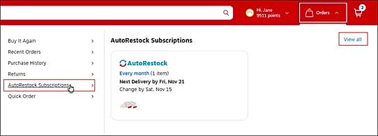 Click here or select the Orders icon then AutoRestock Subscriptions from the menu.