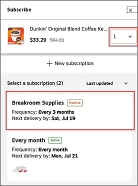 4. When you select Subscribe on an item, a drawer will extend from the right for you to select the quantity and choose which subscription you want to add it to.