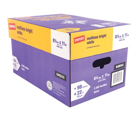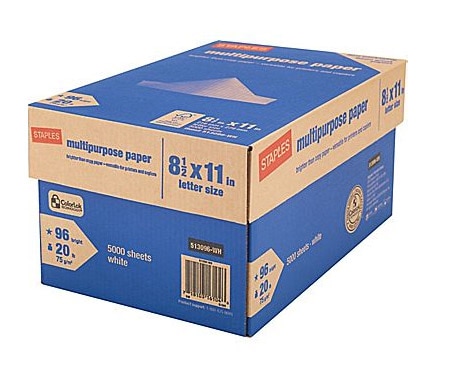 Print as many copies as required on this Staples bright white multipurpose paper. The sheets are bleached to a brilliant white offering ideal contrast for black printer ink. This case provides 5,000 sheets, enough for even the largest print jobs.