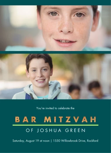 Let friends and family know a child is entering adulthood with custom bar and bat mitzvah invitations. Girls can choose from a variety of templates from simple to elegant with an array of color options to create custom bat mitzvah invitations. Boys can find options for their custom bar mitzvah invitations in multiple styles that are sure to impress guests and friends.