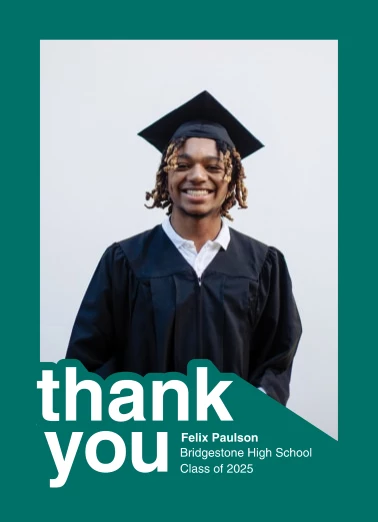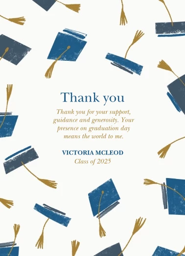 Show appreciation to everyone that made graduation day special and memorable by sending them graduation thank you cards. Create unique cards filled with heartfelt messages that recipients will proudly put on display. Find an impressive selection of pre-formatted templates to design heartwarming thank you cards that are easy and fun to create.