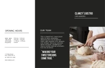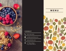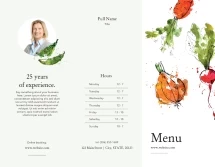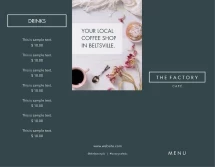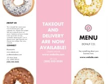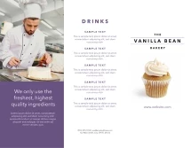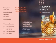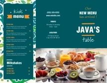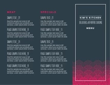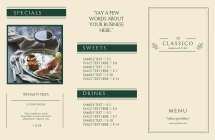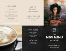 The perfect, classic trifold menu to separate starters, entrées and desserts. Can stand alone atop a table or easily be taken home for takeout and delivery options.